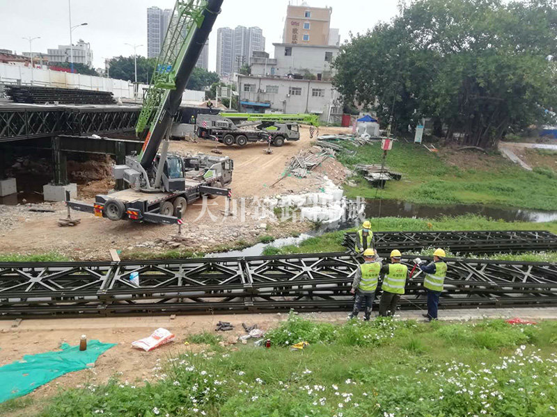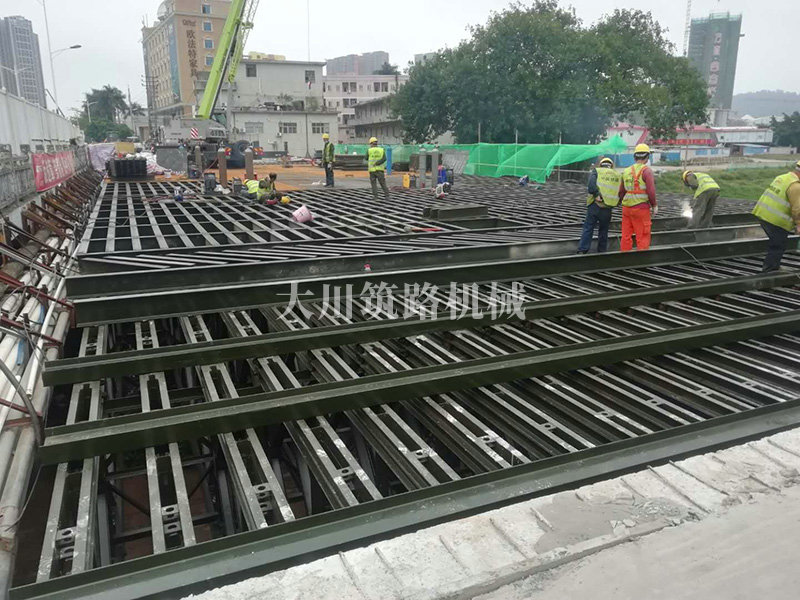 基本情況:本鋼橋安裝工期特別緊急,在疫情期間我公司克服困難,精心安排,合理組織,部分構(gòu)件出廠前既組裝好,減少現(xiàn)場工作量,總安裝周期為40天,保質(zhì)保量按時完成了安裝任務(wù)。通過中南大學(xué)下屬專業(yè)檢測機(jī)構(gòu)檢測后于2020年04月9日通車。